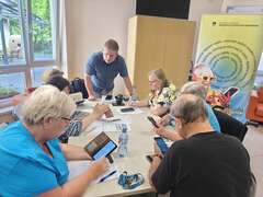 Obiskali so nas iz Andragoškega zavoda – Ljudska univerza Velenje, z namenom, da obnovimo in pridobimo nova znanja o uporabi pametnih telefonov. Prejeli smo kar nekaj novih in koristnih informacij, ki nam bodo prišle prav v vsakdanjem življenju. Imeli smo se lepo, ob tem pa smo se tudi nasmejali in prijetno družili.