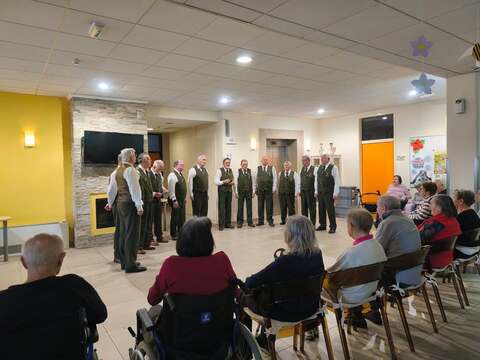 Mesec marec se počasi poslavlja in mu z nežnim valovanjem misli mahamo v slovo. Čeprav koledar že napoveduje pomlad, nas današnji dan še vedno objema z rahlim pridihom zime – kot bi se narava še za trenutek želela ustaviti in zadihati. A prav v takšnih trenutkih toplino ne prinaša le sonce, temveč tudi ljudje. Popoldne so nam tako polepšali pevci lovskega pevskega zbora iz Trbovelj.