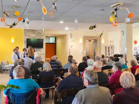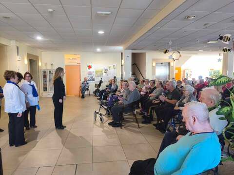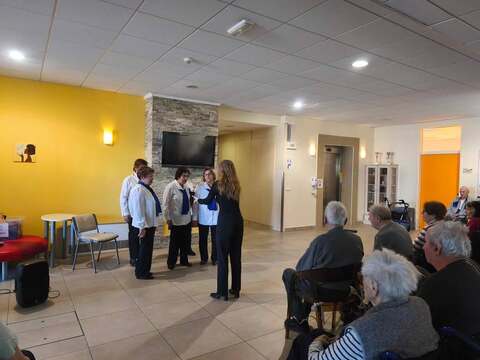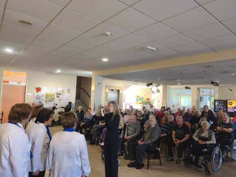 Popoldne je nam polepšal oktet »deklet« MDI Žalec, skupina pevk, ki s svojo energijo, srčnostjo in ubranim petjem prinašajo veselje med ljudi. Njihovo prepevanje nam je ogrelo srca in nam pričarala prav prijetno in sproščeno vzdušje v našem domu.